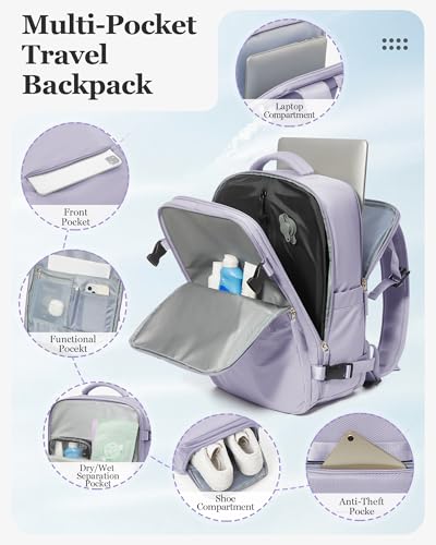• Breathable & Comfortable: The backpack for travel is made of durable, water-resistant and anti-scratch material, which can provide protection on drizzle days. The luggage backpack is constructed to be most comfortable over hours of carrying, with multi-panel ventilated padding and adjustable and breathable straps which relieve the stress of the weight on your shoulders. Equipped with an adjustable chest strap, provides a better wearing experience.