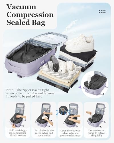 Large Vacuum Travel Backpack Air Vacpack Vacuum Compression Seal Bags with Pump Flight Approved Carry on Luggage Personal item Travel Bag Laptop Backpack with Shoe Compartment Purple