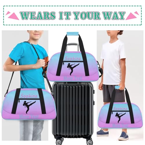 Personalized Kids Martial Arts Bag for Girls Boys Purple Blue Martial Arts Custom Name Travel Duffle Bags Customize Sport Gym Bag Overnight Sleepover Weekender Bag for School Practice Kids Gift 5