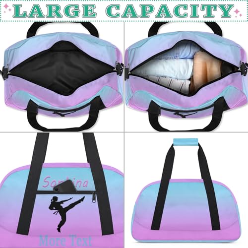 Personalized Kids Martial Arts Bag for Girls Boys Purple Blue Martial Arts Custom Name Travel Duffle Bags Customize Sport Gym Bag Overnight Sleepover Weekender Bag for School Practice Kids Gift 4