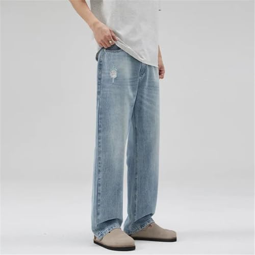 HOT ! Men's American Light-Colored Ripped Jeans Loose Casual Retro Straight Tapered Jeans