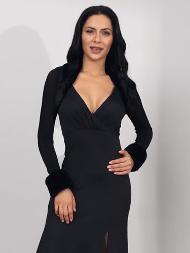 GORAIS Womens Bolero Shrugs Black Evening Fur Bolero Jackets Party Long Sleeve Fur Shrug for Wedding Dresses 5