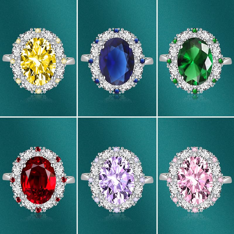 HOT ! FLYYQMIAO Oval Gemstone Cut Birthstone Sapphire Halo Engagement Rings for Women Anniversary 925 Sterling Silver Crystal Cubic Zirconia CZ Wedding Band Promise Adjustable Open Rings for Her(White)