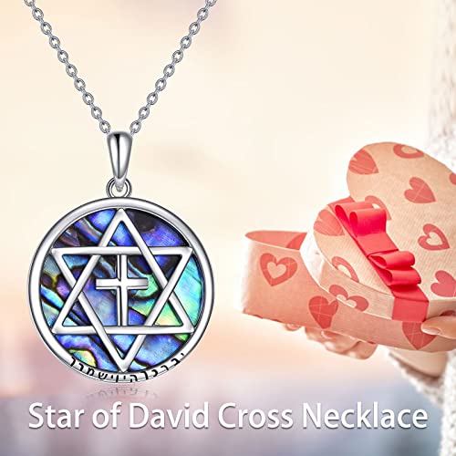 Material: Sterling SilverMetal type: Sterling SilverChain type: C-LinkGem type: No Gemstone๐This cross star of david inlay with colourful abalone shell,mysterious, elegant and charming. And engarved ืืืจืื ื' ืืืฉืืจื(May God bless you and keep you).Wish this cross star of david necklace bring you courage to overcome difficulties in your life.๐Material :100% 925 sterling silver star of david necklace, elegant and charming.Lead-Free & Nickel-Free, Hypoallergenic and Safety for sensitive skins women.๐ Jewish jewelry pendant :1.17*0.87 inch.Chain length: 18 + 2 inch adjustable extension chain.Packaged in an elegant gifts box,superb for Giving or Safekeeping.๐ Gift Wrap: The cross and star of david jewelry comes with the charm gift box, perfect choose for birthday, congratulation, Mother's day, Christmas, anniversary gifts for women,girls,mens,best friend,wife, lover, grandma, mother,etc.๐ SATISFACTION SERVICE:We aim for 100% customer satisfaction. We are pleasure to provide superior jewelry and the best customer service.If there have any problems with the Jewish jewelry gifts, please feel free to contact us,we will be be very pleased to help you. Perfect for everyday use. High quality materials and excellent craftsmanship ensure long-lasting durability.