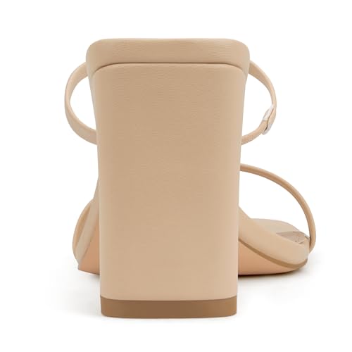 Carcuume Women's Square Toe Two Strap Open Toe Block Heels Sandals Slip On Shoes 4