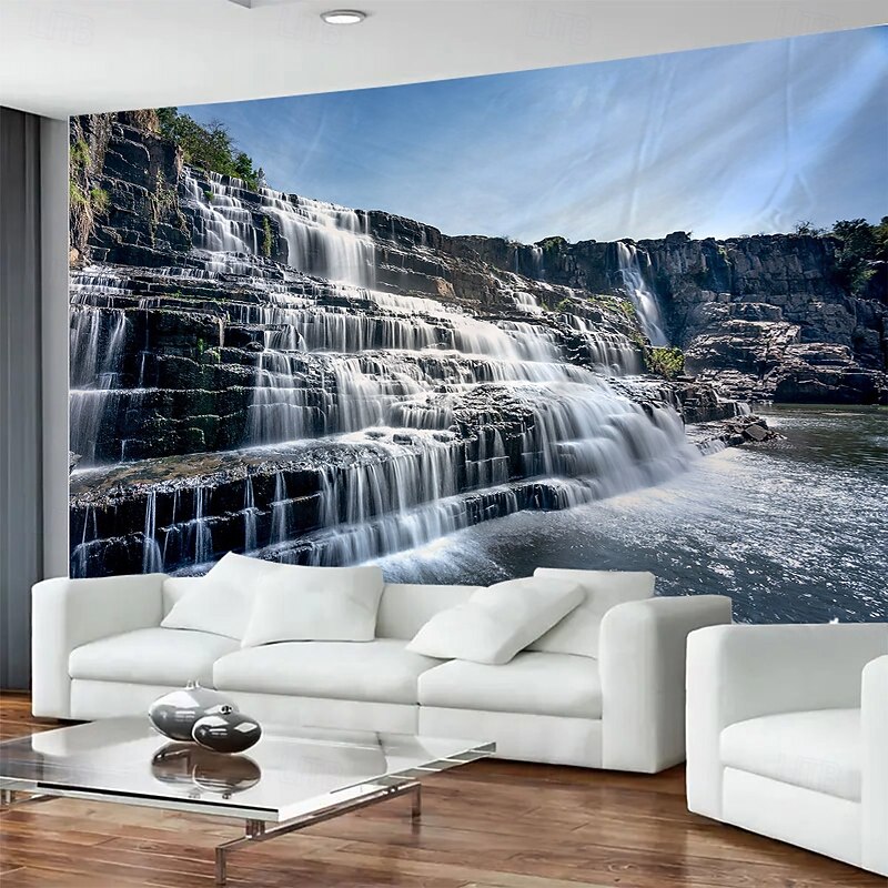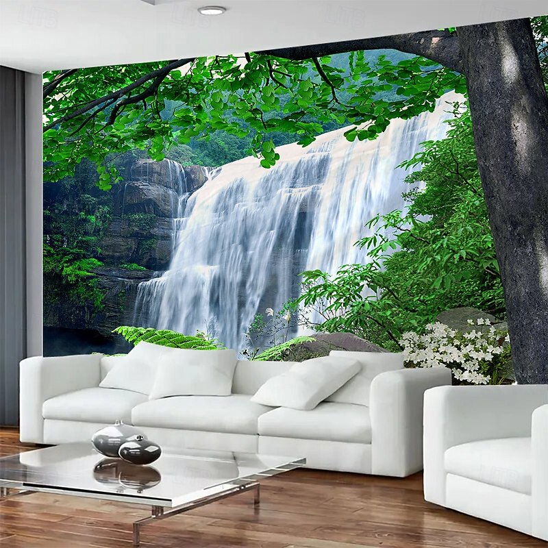 HOT ! Forest Waterfall Landscape Hanging Tapestry Mural Art Large Tapestry Mural Decoration Photos Background Carpet Curtains Home Bedroom Living Room Decoration