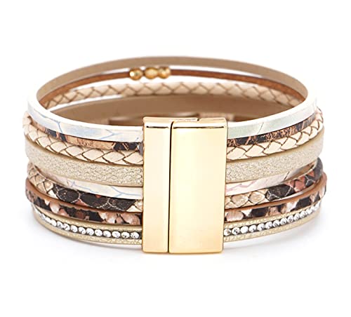 Leopard Leather Wrap Bracelets for Women Multilayer Wristband Cuff Bangle with Magnetic Buckle Gift for Birthday, Mother's Day, Valentine's Day