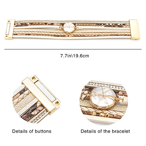 Leopard Leather Wrap Bracelets for Women Multilayer Wristband Cuff Bangle with Magnetic Buckle Gift for Birthday, Mother's Day, Valentine's Day 5