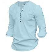 More information about Men's Shirt Popover Shirt Summer Shirt Casual Shirt Band Collar Shirt Black White Blue Long Sleeve Plain Collar Vacation Daily Clothing Apparel Cotton Cotton Blend Fashion Casual Comfortable