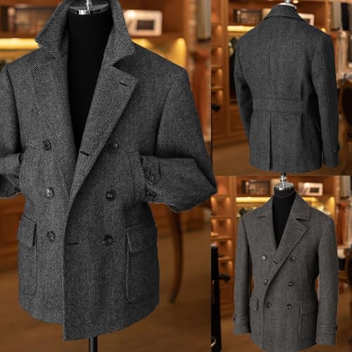 More information about Vintage Classic Tweed Herringbone Double Breasted Wool Blend Men Suit Sports Jacket Blazer Coat
