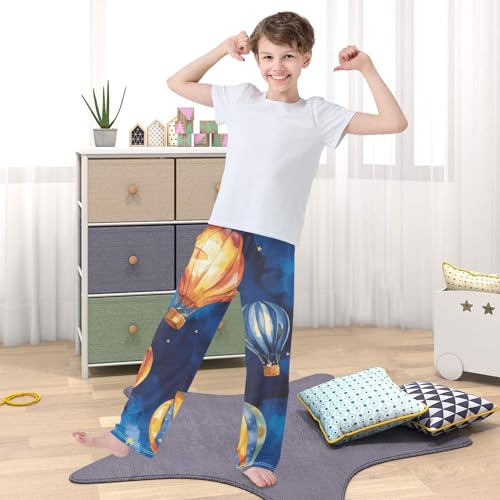 HOT ! Hot Air Balloon Oil Painting Boys Long Pants Soft Trousers Elastic Waist Kids Lounge Bottoms with Pockets S-XL