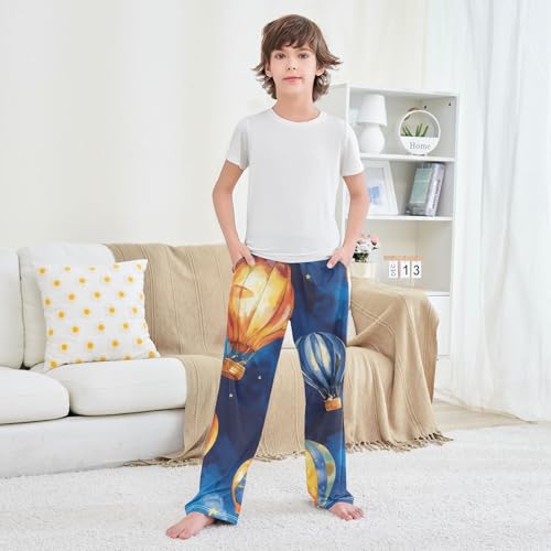 sizzling Air Balloon Oil Painting Boys Long Pants silky Trousers Elastic Waist Kids Lounge Bottoms with Pockets S-XL