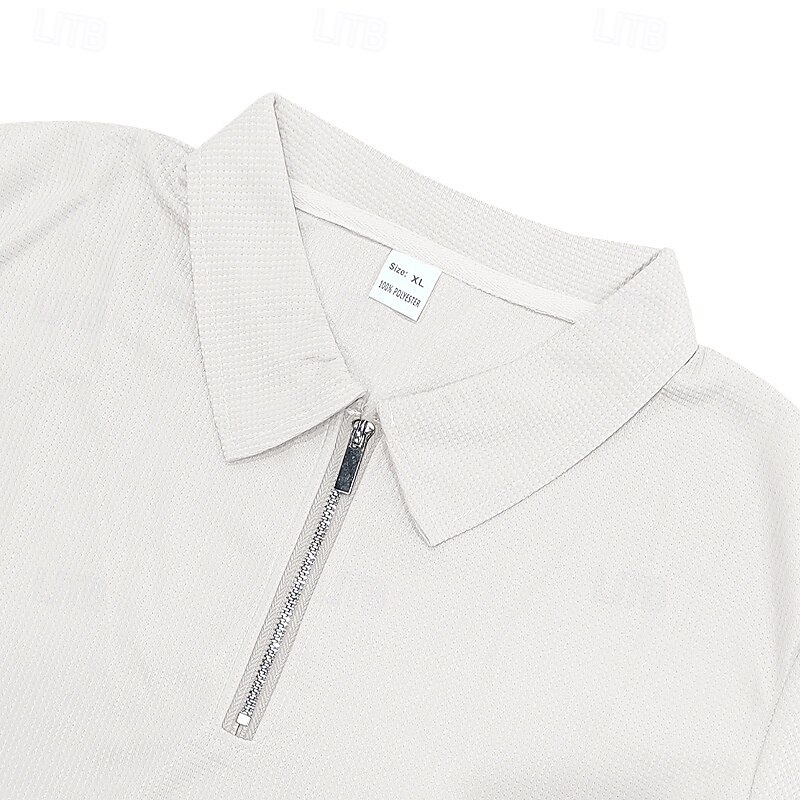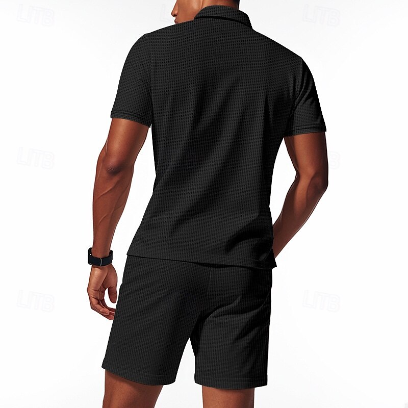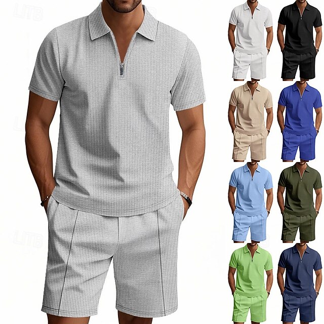 More information about Men's Waffle Polo Shirts Quarter Zip Polo Daily Holiday Lapel Short Sleeve Fashion Basic Plain 2 Piece Summer Regular Fit Black White Navy Blue Royal Blue Green Khaki Waffle Polo Shirts