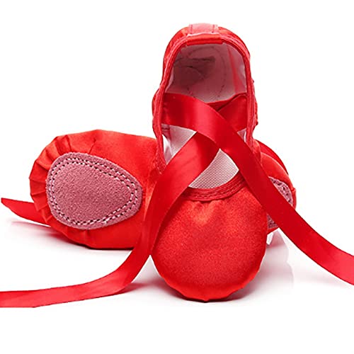Ballet Shoes 2 Pairs Children Kids Beginner Practicing Dance Shoes Soft Sole Satin Ballet for Girls Slipper Dance Ballerina Shoes 156,Red-39(23) 4