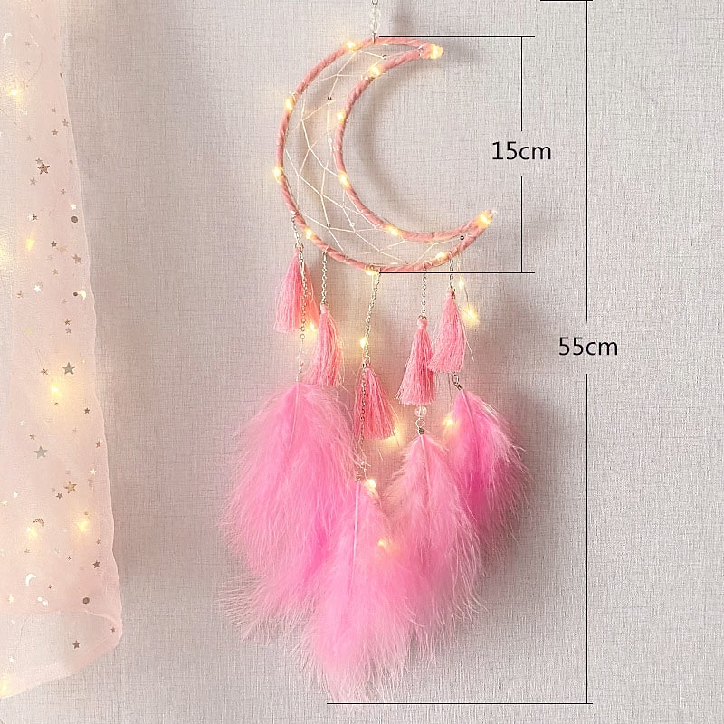Dream Catcher Moon Shaped with Fairy Lights for Bedroom Wall Hanging Decoration Girl Heart Dream Bedroom Decorations Creative Lights Christmas Wedding Living Room Balcony Ramadan Eid Festival Decorations 9