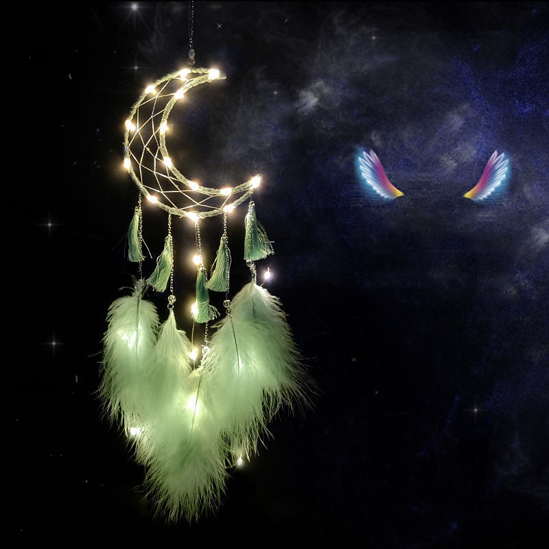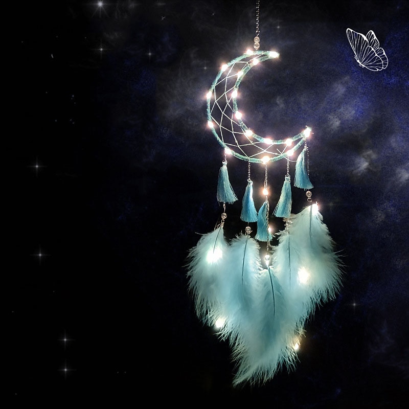 More information about Dream Catcher Moon Shaped with Fairy Lights for Bedroom Wall Hanging Decoration Girl Heart Dream Bedroom Decorations Creative Lights Christmas Wedding Living Room Balcony Ramadan Eid Festival Decorations