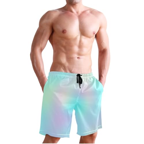 HOT ! Pastel Color Rainbow Marble Gradient Men's Swimming Trunks Quick Dry Swim Suit, Mens Surf Shorts with Mesh Liner