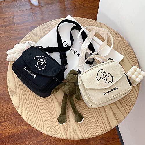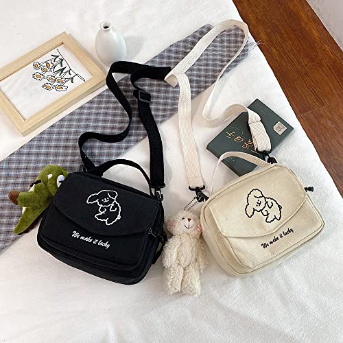 Canvas Shoulder Bag Mini Crossbody Student Ladies Totes Women s Handbag(Black) 1