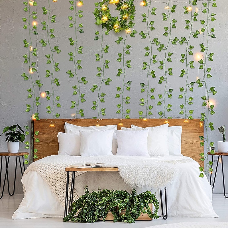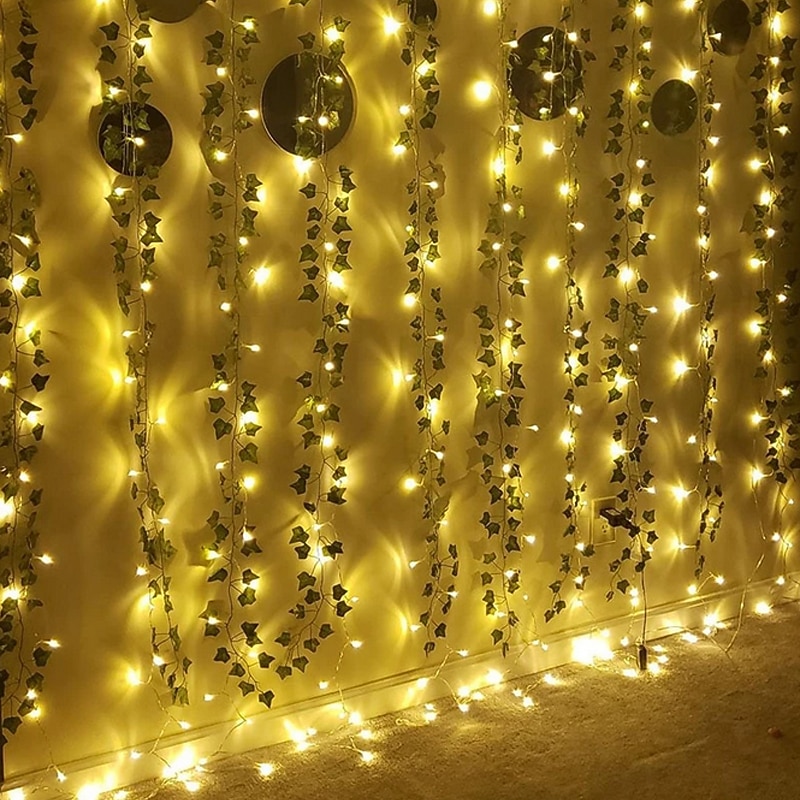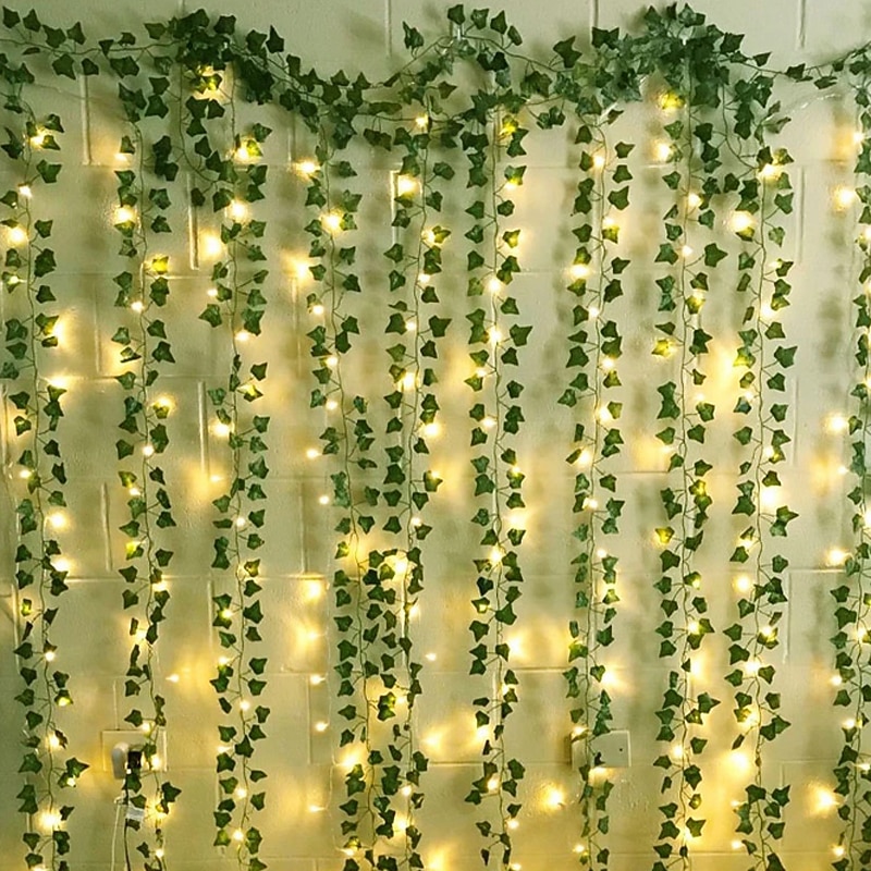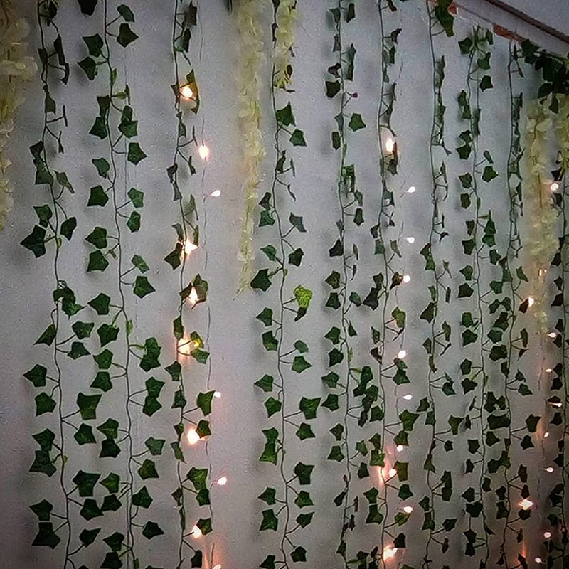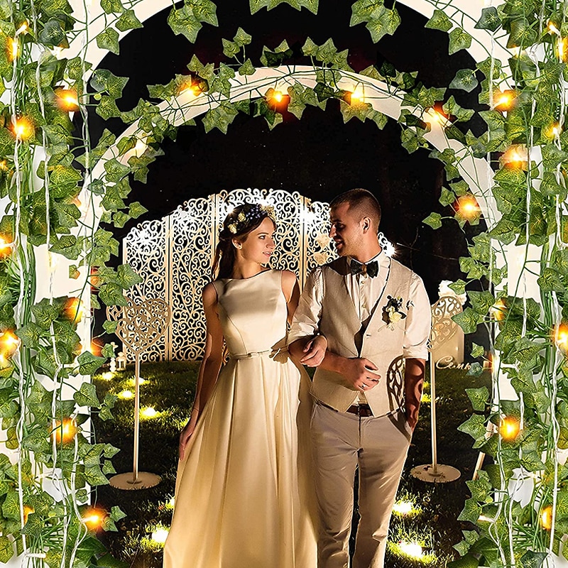 Elegant Wedding Reception Party Artificial Plants LED String Light 2M Creeper Green Leaf Home Wedding Outdoor Ivy Vine Decoration Lamp DIY Hanging Garden Patio Yard (without Battery) 12