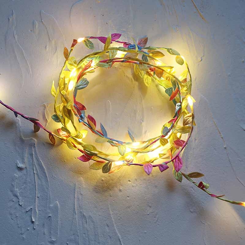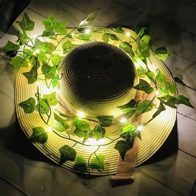 HOT ! Elegant Wedding Reception Party Artificial Plants LED String Light 2M Creeper Green Leaf Home Wedding Outdoor Ivy Vine Decoration Lamp DIY Hanging Garden Patio Yard (without Battery)