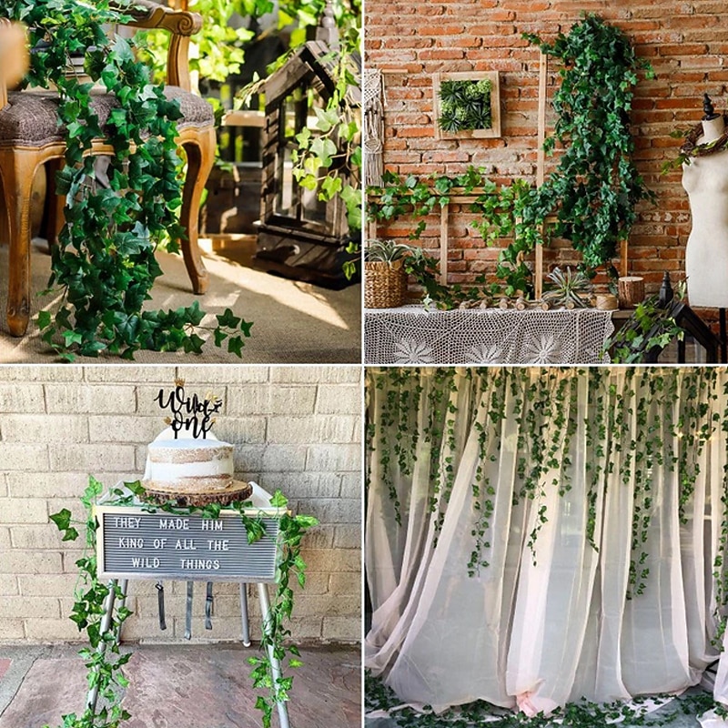 Elegant Wedding Reception Party Artificial Plants LED String Light 2M Creeper Green Leaf Home Wedding Outdoor Ivy Vine Decoration Lamp DIY Hanging Garden Patio Yard (without Battery) 11