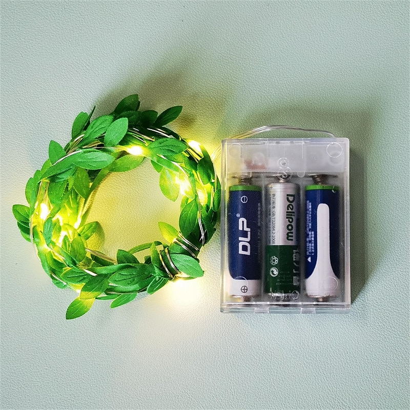 Elegant Wedding Reception Party Artificial Plants LED String Light 2M Creeper Green Leaf Home Wedding Outdoor Ivy Vine Decoration Lamp DIY Hanging Garden Patio Yard (without Battery) 30