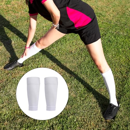 2 Set Grip Socks Soccer with Shin Guard Sleeves Youth Non Slip Athletic Socks with Guards Leg Sleeve for Basketball Football Sports for Men Women One Size 6-10