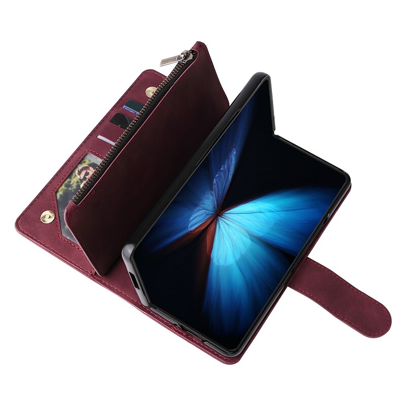 More information about Phone Case For Samsung Galaxy Z Fold 7 Z Fold 6 Z Fold 5 Z Fold 4 Wallet Case Zipper With Card Holder Magnetic Flip Solid Colored PU Leather