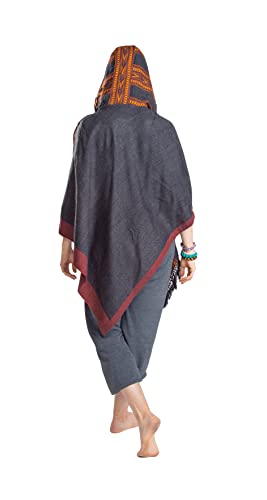 Om Shanti Crafts Hooded Poncho with Fringes, Vegan Wool Wrap, Handmade in India. Unisex 7