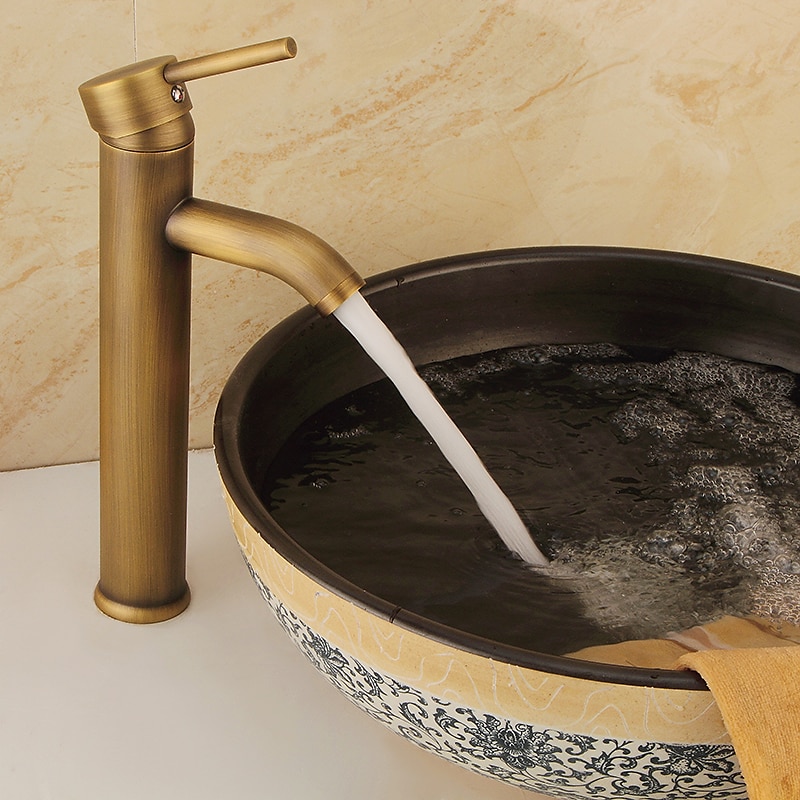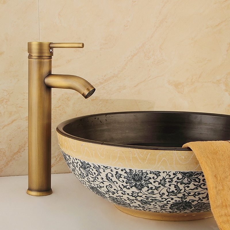 Bathroom Sink Faucet - Classic Antique Brass Centerset Single Handle One HoleBath Taps 8