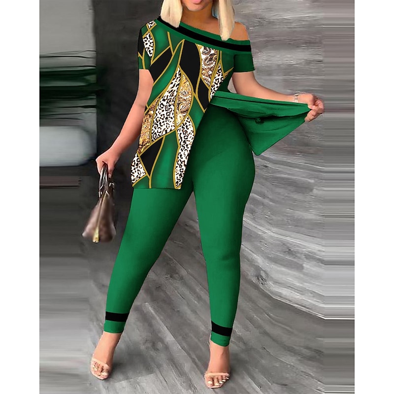 More information about Women's Fashion Shirt Pants Sets Pants Trousers Short Sleeve One Shoulder Leopard Print Casual Daily Yellow Red Blue Spring & Summer Regular Fit