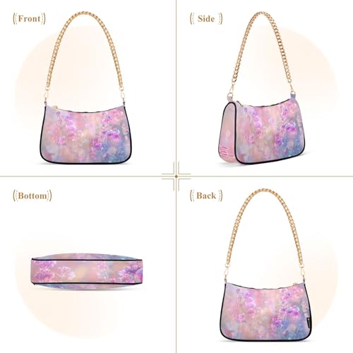 More information about Zipper Retro Formal Purse Hobo Digital Art Wildflowers Pastel Colors Clutch Handbags Women Floral Shoulder Purses with Chain Strap