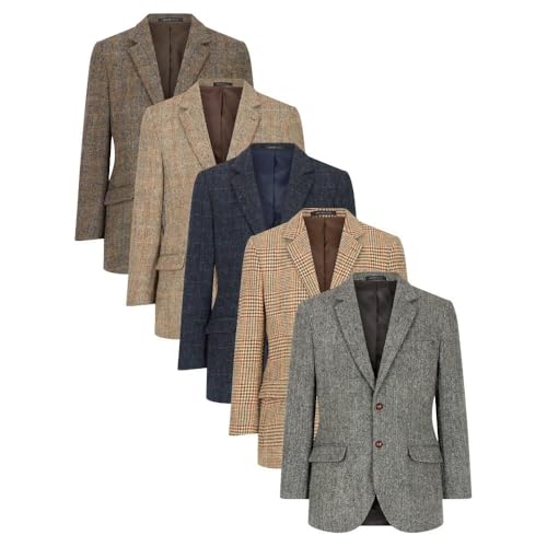 Fabric type: 100% pure virgin woolCare instructions: Dry Clean Only100% AUTHENTIC HARRIS TWEED: Hand-woven in the Western Isles of Scotland with robust, luxurious fabric, this tweed blazer is woven extremely tightly, resistant to creases and wrinkles, and designed with years of expert craftsmanshipWATER-RESISTANT: This light jacket is water-resistant and can absorb up to 30% of its weight in moisture without soaking through. This also helps absorb perspiration to keep you cool during the summer months. Suitable for all weather β wear with a shirt during the summer or pair with our matching waistcoat during the winter. Suitable for a wide range of uses, including shooting, hiking, fashion, outerwear, races, weddings, formal occasions and more!VERSATILE: Sport coat features 2 front pockets with flaps and 4 interior pockets. Single-breasted casual blazer with 2 leather button fastenings and 3 genuine leather buttons at cuffsRENEWABLE WOOL: Outer fabric is 100% virgin wool, a renewable, low-carbon resource. Internal lining is made from 100% polyesterREGULAR FIT: The iconic tweed blazer men love. Regular fit, with side vents for added breathability and freedom of movement. Matching waistcoats, gloves and hats available. Spare leather buttons included. Harris Tweed seam label on left sleeve cuff. Dry-clean or handwash only