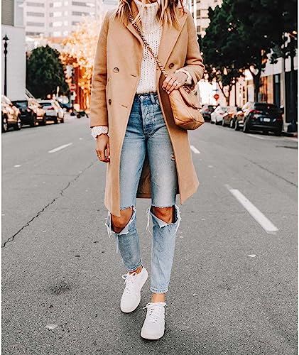 xxxiticat Women's Double Breasted Peacoat Wool Notched Lapel Trench Coat Winter Mid Length Long Jacket Overcoat 4