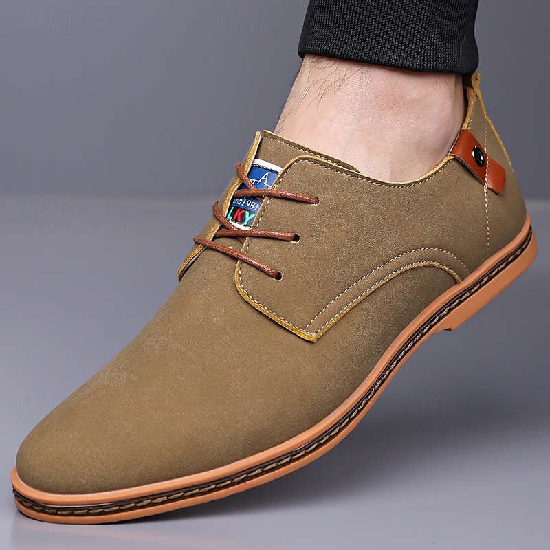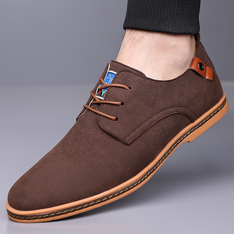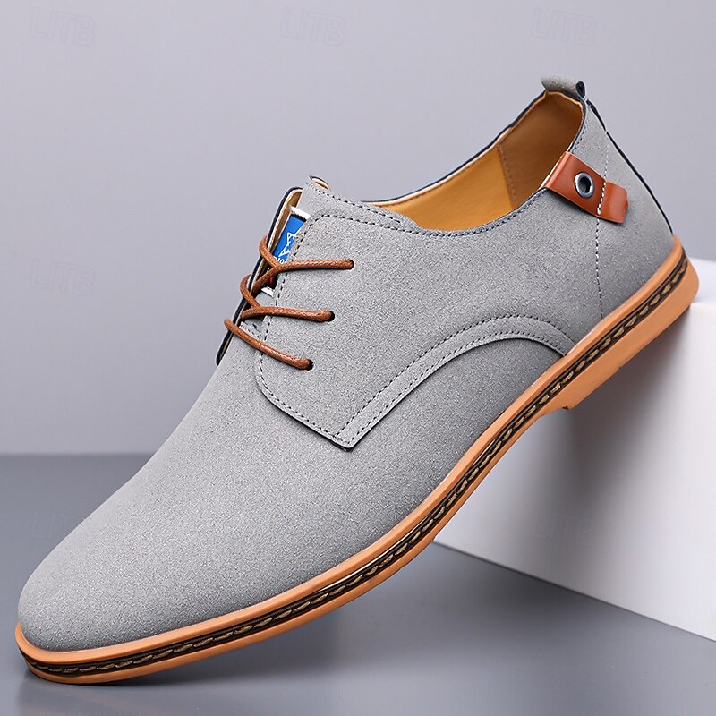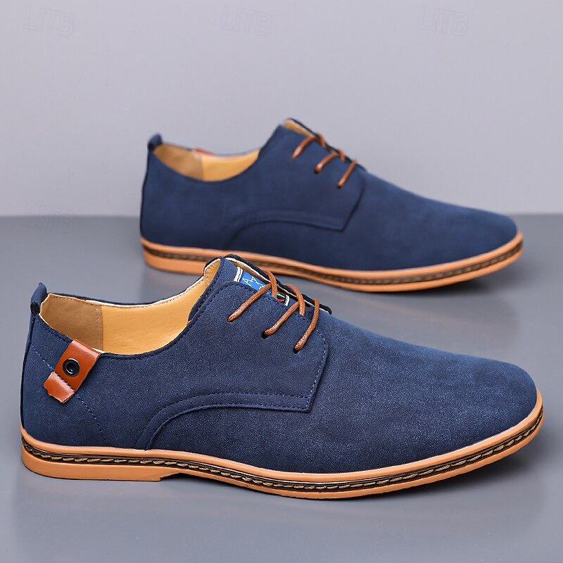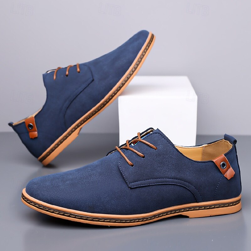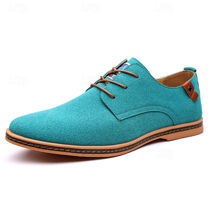 Men's Teal Suede Lace-Up Oxford Shoes with Soft Lining and Wooden Sole, Vintage Casual Dress Shoes for Parties and Business Outfits 37