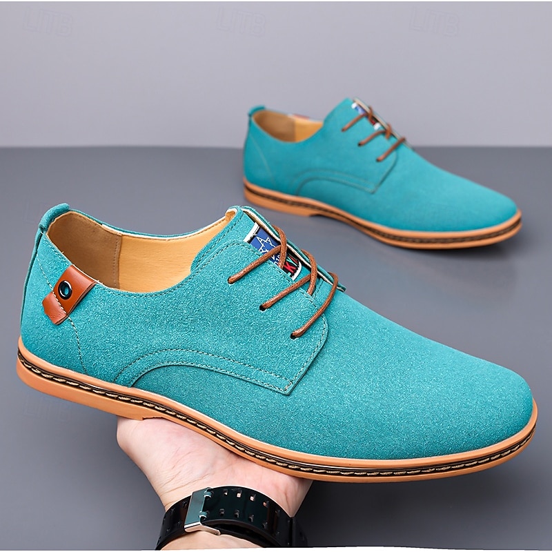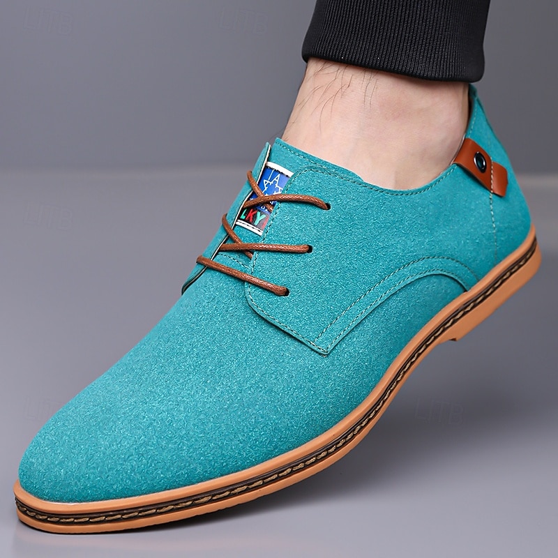 sought-after ! Men's Teal Suede Lace-Up Oxford Shoes with plush Lining and Wooden Sole, Vintage Casual Dress Shoes for Parties and Business Outfits