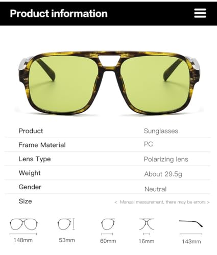 • SUITABLE OCCASION: Whether you're strolling through the city, soaking up the sun on the beach, or dressing up for an event, these trendy 70s square aviator sunglasses seamlessly fit into your lifestyle, offering both style and functionality. The slightly wider frame offers extra sun protection while keeping your look effortlessly cool