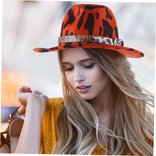 LIFKOME 1Pc Ladies Leopard Print Flat Brim Jazz Hat with Buckle Belt Fashionable Fedora for Parties Events and Cosplay Windproof Breathable All Season Accessory for Women Red 7