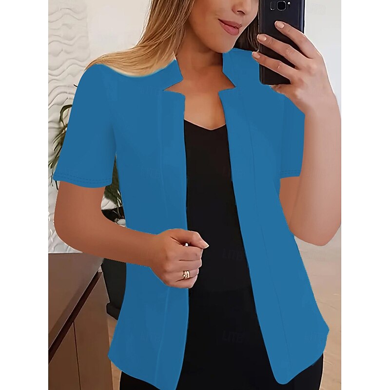 Women's Blazer Comfortable Breathable Slim Fit Fashion Modern Plain Work Daily Regular Stand Collar Regular Fit Short Sleeves Outerwear Black White Yellow Summer 28