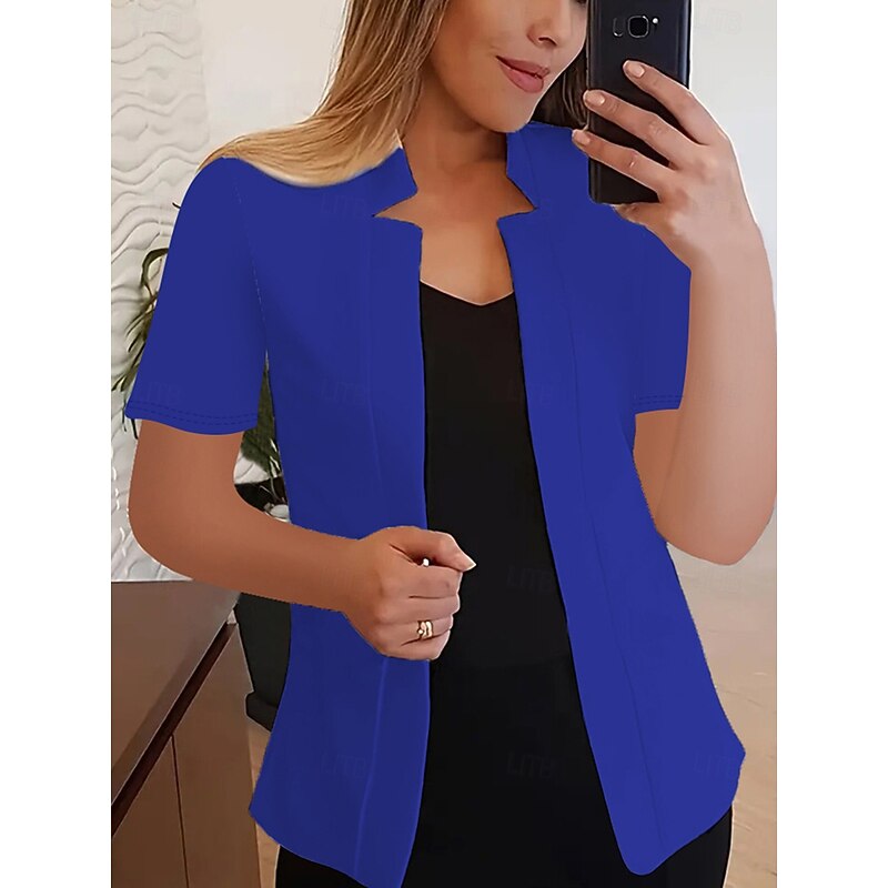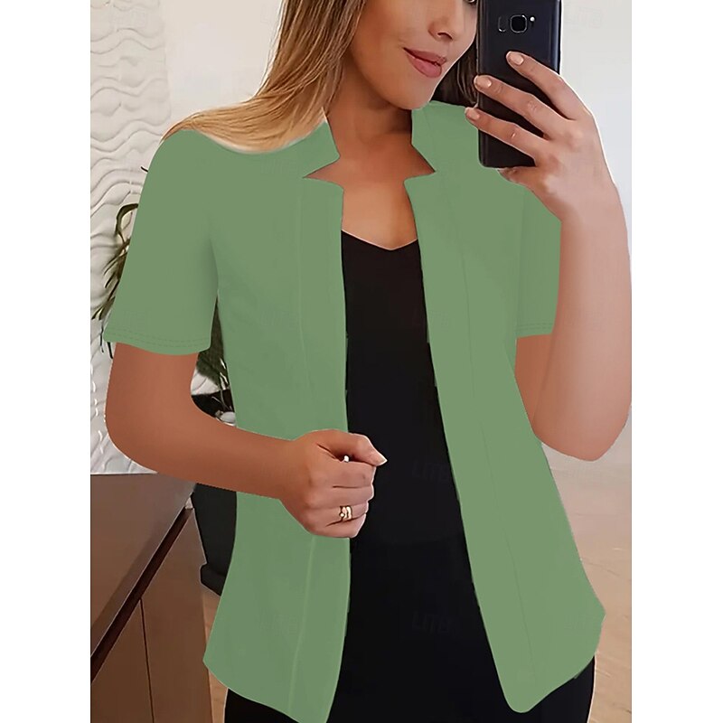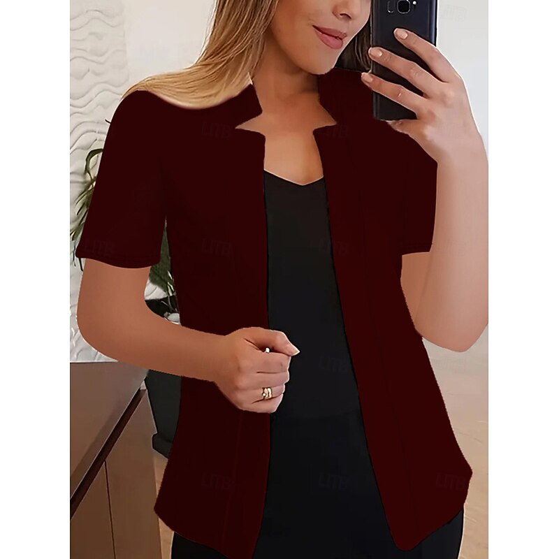 Women's Blazer Comfortable Breathable Slim Fit Fashion Modern Plain Work Daily Regular Stand Collar Regular Fit Short Sleeves Outerwear Black White Yellow Summer 24