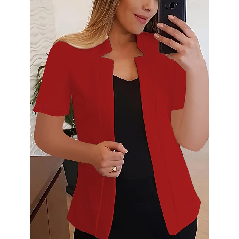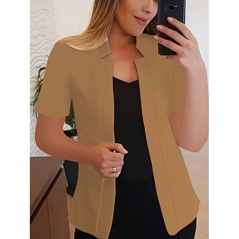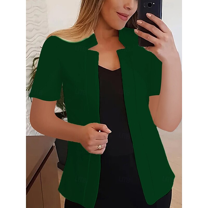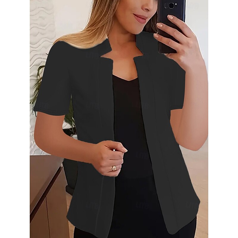 HOT ! Women's Blazer Comfortable Breathable Slim Fit Fashion Modern Plain Work Daily Regular Stand Collar Regular Fit Short Sleeves Outerwear Black White Yellow Summer