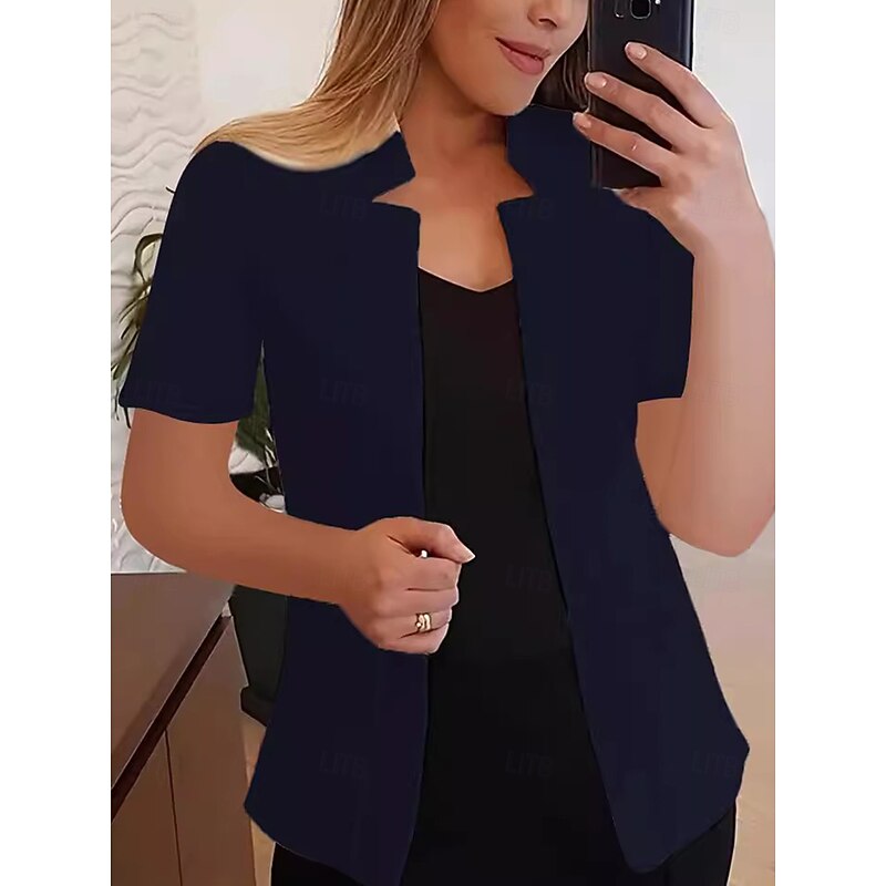 Women's Blazer Comfortable Breathable Slim Fit Fashion Modern Plain Work Daily Regular Stand Collar Regular Fit Short Sleeves Outerwear Black White Yellow Summer 6