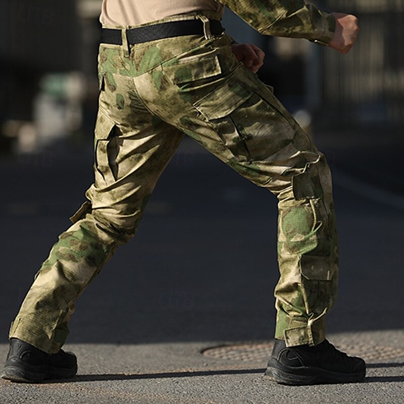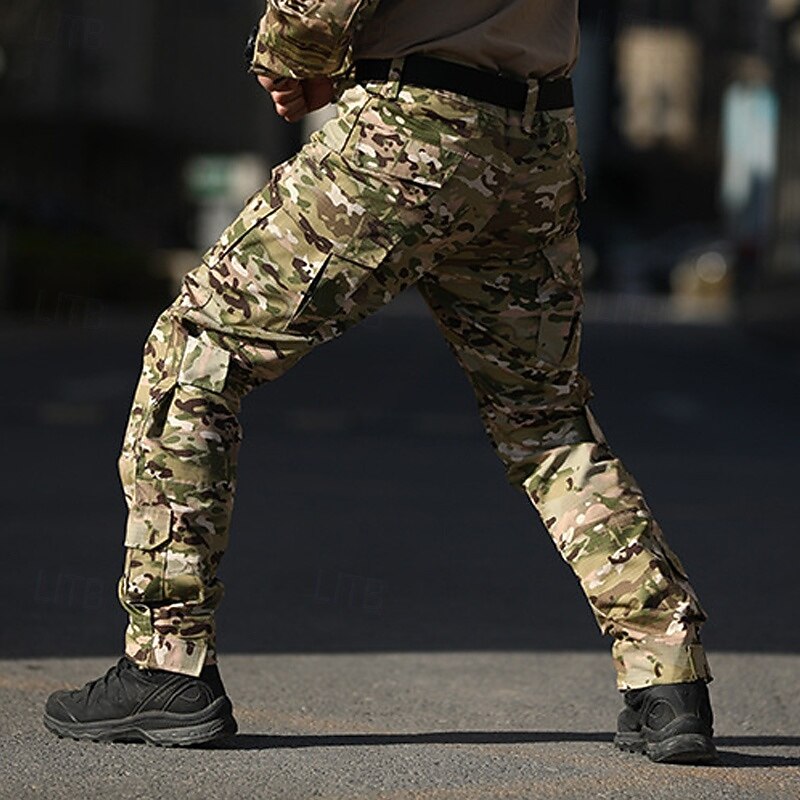 Highlights [Fabric]: Crafted from a durable cotton blend, these men's tactical cargo pants offer a breathable and comfortable wear suitable for outdoor activities. The fabric combines resilience with a soft texture, ensuring both comfort and durability for any adventure. [Fit]: Featuring a regular fit design, these cargo pants provide a balanced silhouette that suits various body types. The mid-waist aligns well with most tops, while the straight-leg design allows for easy mobility and flexibility during both casual and outdoor activities. [Design Highlights]: The pants boast multiple utility pockets on the front and sides, ensuring ample storage space for personal items, tools, or gadgets. Reinforced stitching on the seams enhances durability, while the robust button fly closure adds to the secure and enduring look. The belt loops along the waistband allow for an adjustable fit with a belt. [Occasions]: Ideal for daily wear, outdoor adventures, camping, and hiking, these tactical pants are designed to withstand rugged environments. Whether you're navigating a city or exploring trails, they provide the functionality and style needed for versatile use. [Size Range]: Available in sizes S, M, L, XL, 2XL, and 3XL, these pants cater to a wide range of fits, ensuring that every customer finds their perfect size for comfortable wear. Colors include Black, Army Green, Camouflage, and Camouflage Green, offering variety to suit personal style preferences. Perfect for everyday use. excellent materials and excellent craftsmanship ensure long-lasting durability.