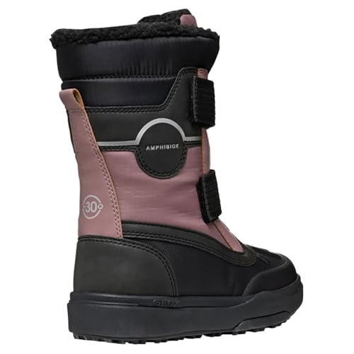 Origin: ImportedSole material: RubberShaft height: Calf HighOuter material: SyntheticStylish Snow Boot: Showcase a bold and fashionable look with this Geox snow boot, designed specifically for girls with a Dk Rose and Black color combinationPremium Quality Material: Constructed with high-quality synthetic material and a rubber sole, ensuring durability, comfort and flexibility for the little onesWaterproof Protection: Brave the winter snow with confidence, as this snow boot is designed to be waterproof, keeping your child's feet dry and warmIdeal for Winter Activities: Perfect for winter hiking and outdoor adventures, this mid-top snow boot with a flat heel and closed toe design is both safe and comfortableBreathable and Insulated: Featuring a foam or insulating material insole, this snow boot offers moderate cushioning and breathability, ensuring a comfortable fit for your child's feet Perfect for everyday use. excellent materials and excellent craftsmanship ensure long-lasting durability.