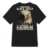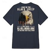 Highlights [Fabric]: Crafted from 100% high-quality cotton, this Men's T-shirt offers a breathable and comfortable experience, suitable for warm summer days. The microfiber-elasticity adds just the right amount of stretch, ensuring ease of movement and a relaxed fit. [Fit]: Designed in a regular fit, this tee provides a classic and timeless silhouette that complements various body types. The crew neck and short sleeves contribute to its casual and versatile look, making it a staple piece in any wardrobe. [Design Highlights]: Featuring a striking graphic design with an eagle and American flag motif, this T-shirt is perfect for those looking to express their patriotic spirit. The bold text "I may be the black sheep but when all hell breaks loose I'm the one they call upon" adds a touch of individuality and character, making it a standout choice. [Occasions]: Ideal for outdoor sports, holidays, and casual outings, this T-shirt seamlessly transitions from a day at the park to a laid-back evening event. Its versatile style ensures that it can be worn in various settings, from relaxed gatherings to casual sports activities. [Size Range]: Available in a range of sizes from S to XXL, this T-shirt caters to a broad audience, ensuring a comfortable and stylish fit for different body types. Choose the size that best fits your needs for an optimal wardrobe addition.