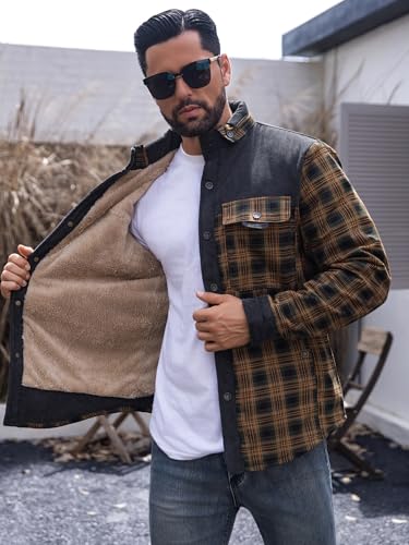 Zaitun Men's Sherpa Lined Flannel Corduroy Plaid Shirt Long Sleeve Button Up Jacket Fleece Coat For Men With Pocket