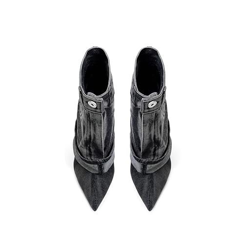 Pointed Toe Fine Stiletto High Heel Ankle Denim Booties for women Fold Over Ankle Short Jean Boots Fashion Women's Shoes 5