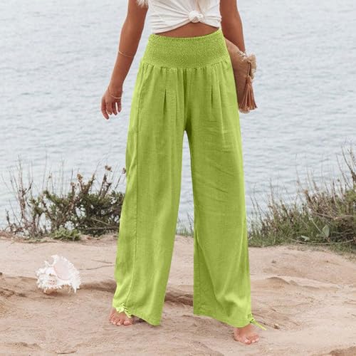 HOT ! Womens Linen Wide Leg Pants Beach Vacation Outfits Summer Boho Casual Lounge Pant Flowy High Waist Palazzo Trousers