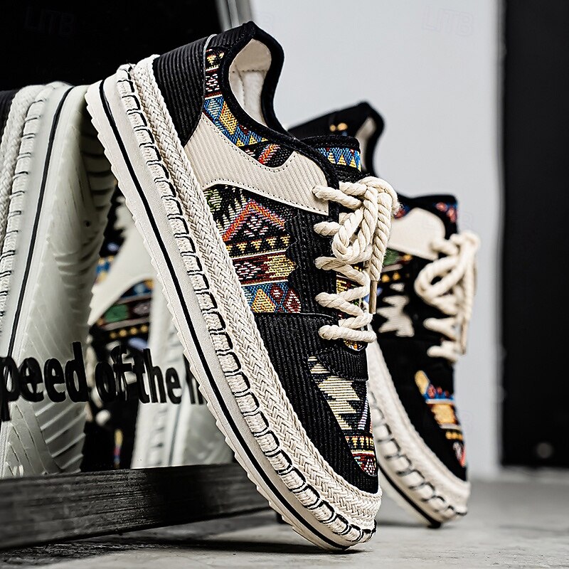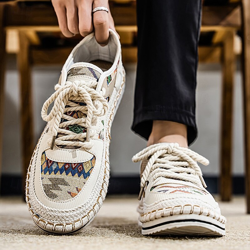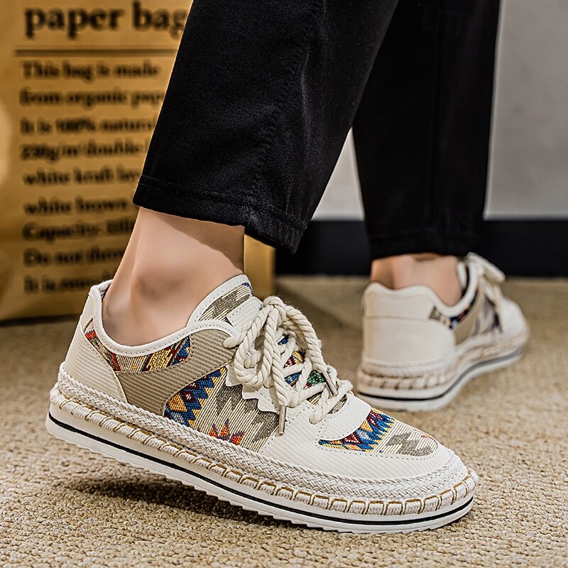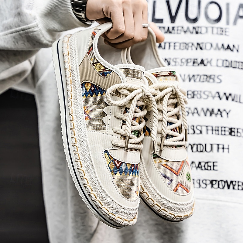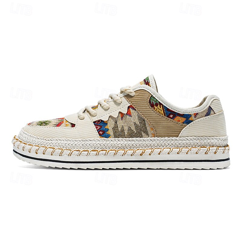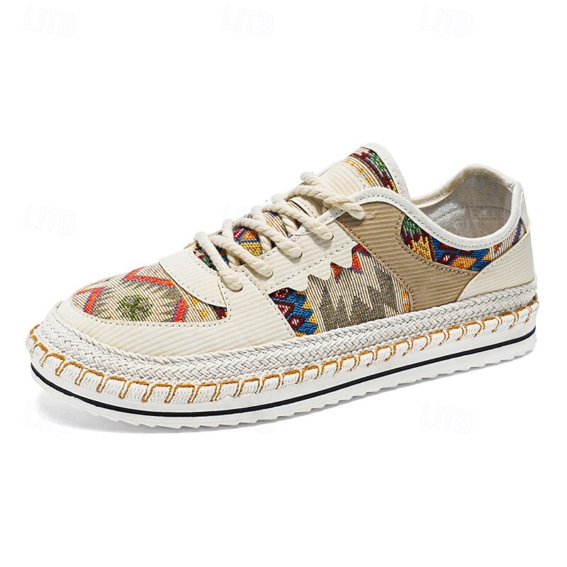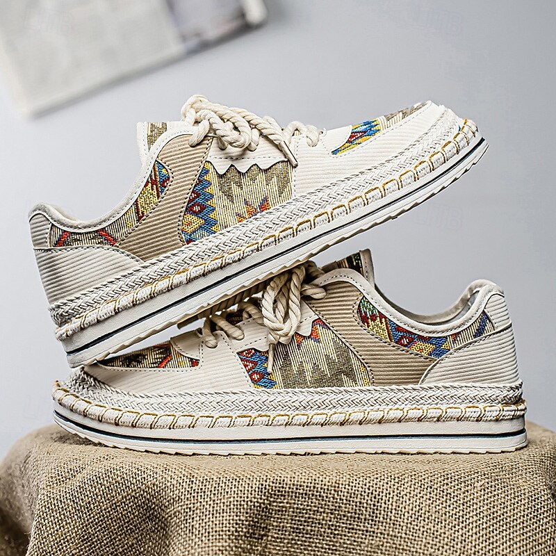 HOT ! Men's Beige and Multi-Color Walking Shoes with Woven Design – Trendy Sneakers for Casual and Vacation Wear