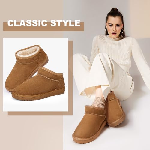 Outer material: SuedeClosure type: Pull-On🥾Stay Warm & Cozy - Memory Foam & Faux Fur Lining: Keep your feet warm and comfortable with these Platform Mini Winter Boots for Women. The warm faux fur lining and memory foam provide superior comfort during the coldest winter days, ensuring you stay cozy whether indoors or outdoors.🥾Water Resistant for All-Weather Protection: These Slip On Winter Boots are designed to resist water, keeping your feet dry in snow or rain. The water-resistant materials offer extra protection during winter, so you can enjoy outdoor activities worry-free.🥾Durable Non-Slip Rubber Sole: Step confidently with the anti-slip rubber sole, which provides excellent grip on wet and slippery surfaces. These Ultra Mini Ankle Boots ensure safety and stability with every step.🥾Easy Slip-On Design: With a convenient slip-on design, these boots are perfect for quick and easy wear. No laces or buckles needed, just slide your feet into the women's boots for a snug and secure fit.🥾All-Weather Versatility: Whether you're navigating snowy streets, braving the rain, or enjoying outdoor adventures like hiking or walking your dog, these Winter Warm Booties are built to handle it all. Their sophisticated design makes them ideal for pairing with both jeans and casual trousers, ensuring you're ready for winter festivals like Halloween and Christmas with both comfort and flair. Perfect for everyday use. excellent materials and excellent craftsmanship ensure long-lasting durability.